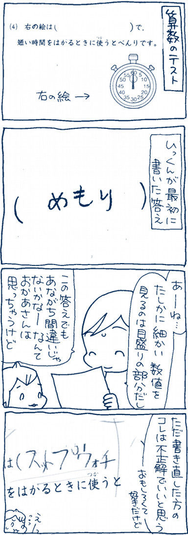 2015年05月19日 アナログ式のこれも今あんまり見ないけど 正しくはストップウォッチですね。スットプウォチ じゃないですね。マルしてもらってましたが(おまけ?)ーーーーぷにんぷかあさん 今日も育児日和/マイナビ絶賛発売中です!¥1,134ひきつづきよろしくお願いします!ーーーラインスタンプ発売中 Twitterはこちらからfacebookはこちら ◆ランキング参加中◆ 「いっくん」カテゴリの最新記事 < 前の記事次の記事 > コメント コメント一覧 (6) 3. まぃき 2015年05月19日 13:03 私も初見で正解じゃん?と思ってしまいました(汗) 5. たまひこ 2015年05月19日 18:27 会社帰りににやけてしまいました(≧∇≦)b この答え、プの部分をブに変えたらスットブウォッチになりますね(笑) 実際私はぱっと見そう読みました^_^; この場合は、やっぱりバツですかね^_^; かわいい間違いありがとうございました(≧∇≦)b 1. クリちゃん 2015年05月19日 12:13 もしかして先生これで正しく読んじゃったんじゃぁ?( ̄∇ ̄;)脳ってそれっぽかったら間違えちゃうって言いますし。 4. とこっち 2015年05月19日 16:07 すいません、電車の中で吹いちゃいましたw 正解にしてくれるんですね。 先生の見間違え??(^_^;) 6. あ~や 2015年05月19日 20:50 言いづらい(^^; 先生も見間違えたかもf(^^; 2. BEATNIK 2015年05月19日 12:34 ネイティブな英語の発音では スットプウォチなのです~ (゜゜;)\(--;)ナンデヤネン