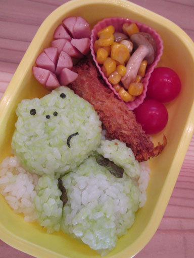 カエルくんは枝豆ごはんなのですがちょっと緑が薄かったです。