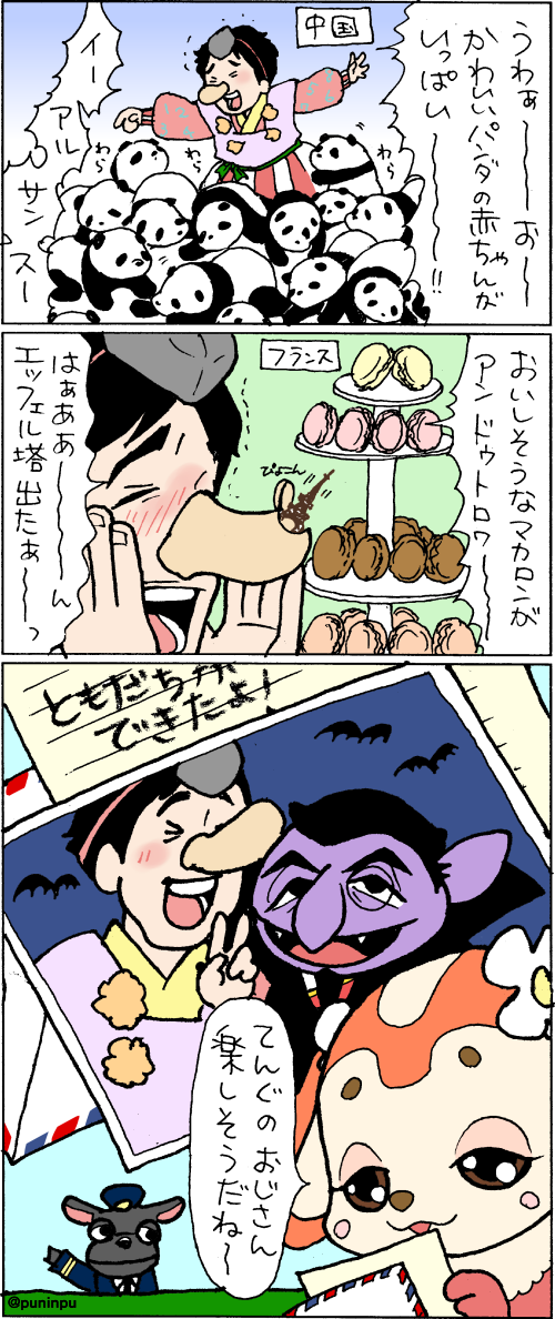 はじめて数えるのをやめたかぞえてんぐさんを描きました。だいすけおにいさん、ありがとう。