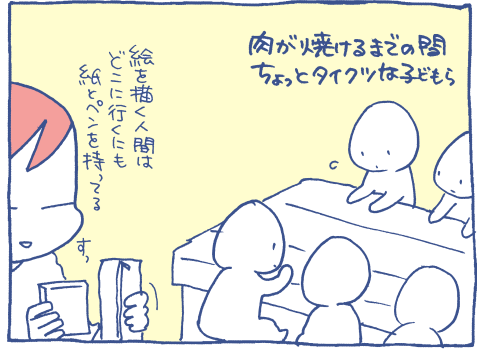 持っていたメモ帳にお子さん達の似顔絵を描いていました。