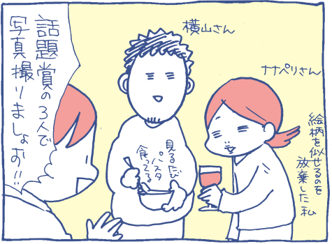 並んで写真撮りましょうと提案しました。