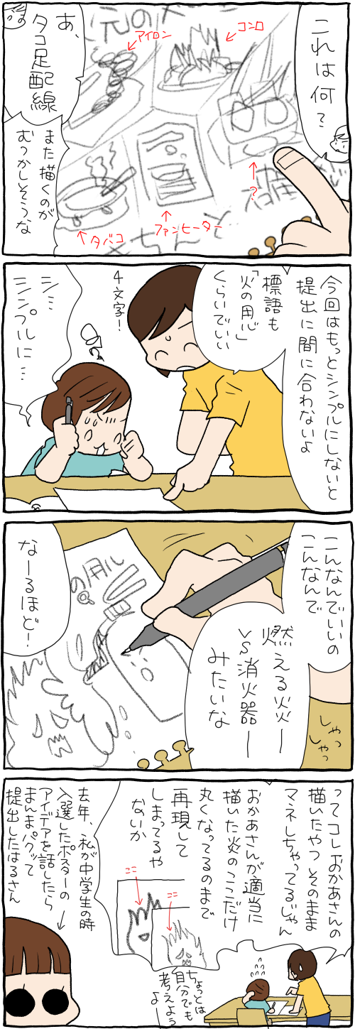 防災ポスターにとりかかるいっくん