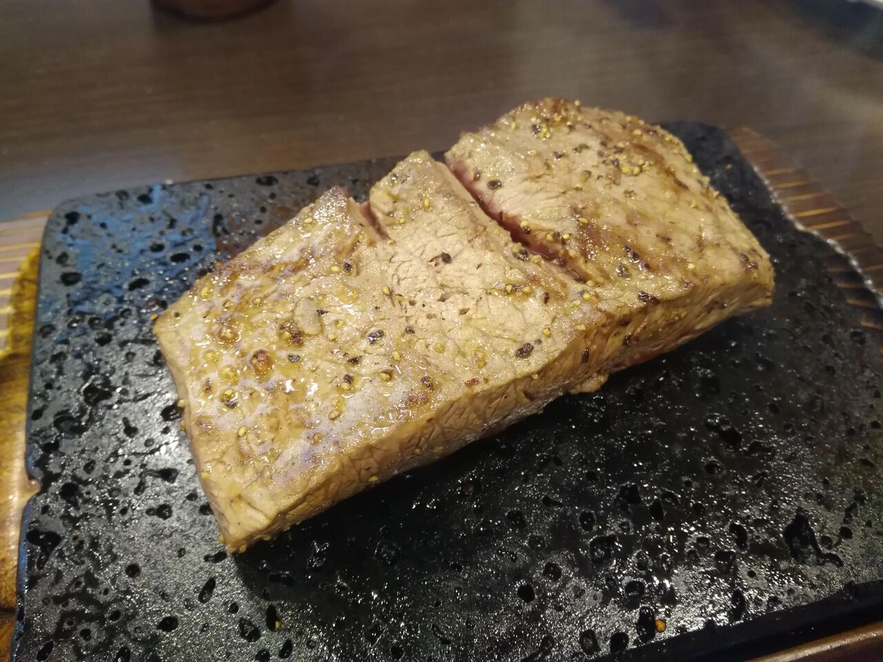 なんかね、富士溶岩石のプレートにお肉乗ってくるんだって〜。