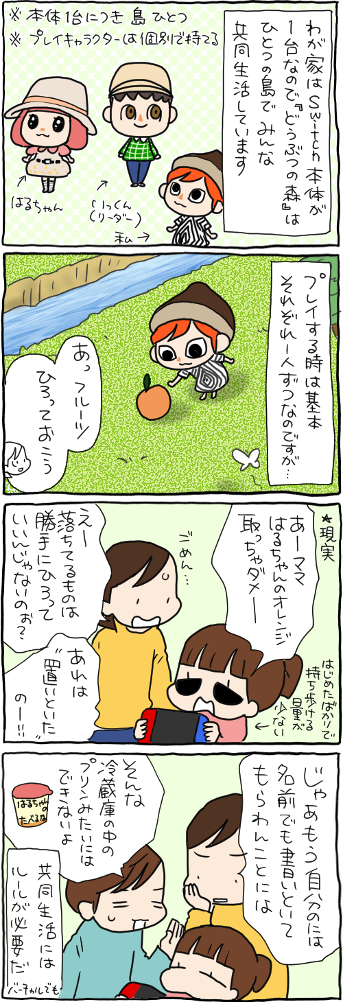 2020年03月25日 島で共同生活をするために【どうぶつの森】 ーーーサブブログもどうぞ! ーーーゆかいな猫まんが!『おふぐりさま』野良猫世界のシビアな現実 ーーーKADOKAWA児童書ポータルサイト『ヨメルバ』にて学習まんが『日本の歴史』読後レポが掲載されています! 『たぶんそのぶんふたりぶん』更新されてます! マイナビニュースのこちらの記事もどうぞ ーーーConcent掲載の企画モノコミックエッセイ新作です! ーーーレタスクラブニュースのこちらの記事もどうぞ ーーーこちらもひきつづきよろしくお願いします!ハンドメイドで楽しい毎日! わるのりてづくり [単行本]前川 さなえ二見書房2017-04-245歳だって女。 (メディアファクトリーのコミックエッセイ) [単行本]前川 さなえKADOKAWA2016-02-19ぷにんぷにんぷ [単行本]前川 さなえ幻冬舎2016-03-10ぷにんぷかあさん 今日も育児日和 [Kindle版]前川さなえマイナビ出版2014-04-25ーーー↓今日もポチッとお願いします。にほんブログ 「日常」カテゴリの最新記事 タグ :#どうぶつの森#あつまれどうぶつの森 < 前の記事次の記事 > コメント コメント一覧 (1) 1. おの 2020年03月28日 02:10 それぞれの置き場所を決めておけばよいということで 親子でゲーム一緒に楽しむって最高ですね 私もそんな経験してみたかったなー うちの親は堅物と不器用でゲームに関して理解ないのでうらやましいです
