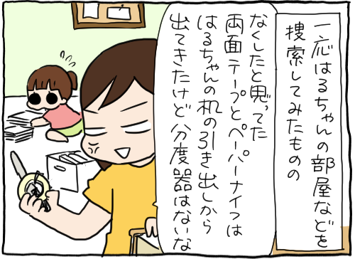 授業で使う分度器をなくしたはるちゃん(朝発覚)