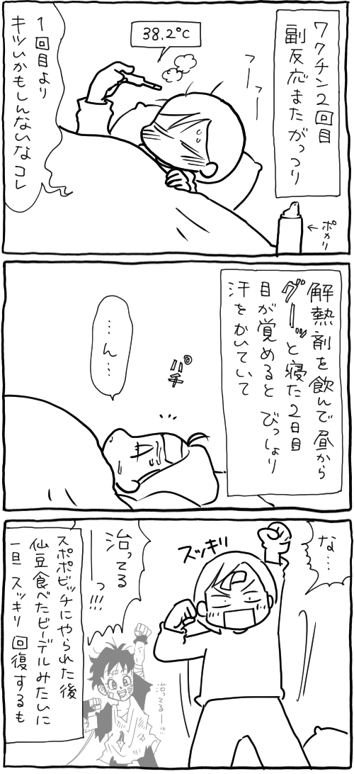 副反応しんどすぎてもうやだ〜って気持ちになっちゃってますね。