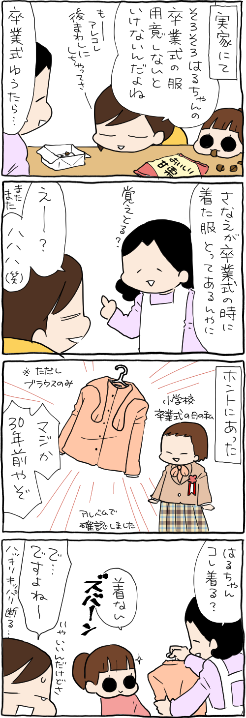 2022年02月28日 30年前の卒服 ーーーゆかいな猫まんが!おふぐりさま最新話はこちらから ↓ひとつ前のお話はこちら ーーー『たぶんそのぶんふたりぶん』更新されてます! ーーーレタスクラブニュース レタスフレンズ『やってみた』記事です ーーー電気事業連合会Consent電気なし生活漫画新作です。 ーーーYoutubeはじめましたよければチャンネル登録よろしくお願いします!ーーーこちらもひきつづきよろしくお願いします!ハンドメイドで楽しい毎日! わるのりてづくり [単行本]前川 さなえ二見書房2017-04-245歳だって女。 (メディアファクトリーのコミックエッセイ) [単行本]前川 さなえKADOKAWA2016-02-19ぷにんぷにんぷ [単行本]前川 さなえ幻冬舎2016-03-10ぷにんぷかあさん 今日も育児日和 [Kindle版]前川さなえマイナビ出版2014-04-25ーーー↓今日もポチッとお願いします。にほんブログ 「おかあさん」カテゴリの最新記事 < 前の記事次の記事 >