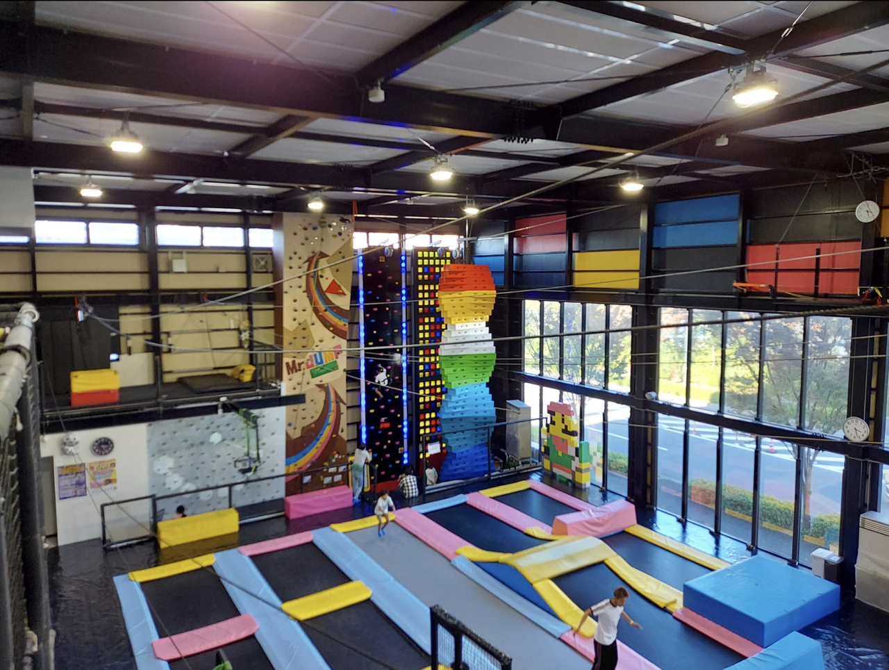 トランポリンだけでなく、ボルダリングや