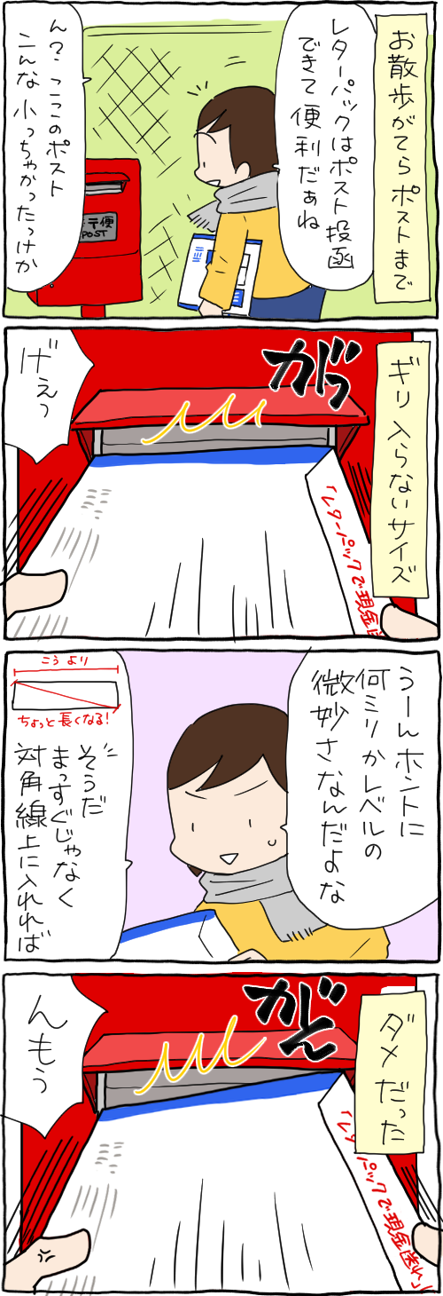 2024年03月07日 いちかばちかやってみた 結局ちょっと離れた別のポストまで歩いたけどもしかしたらサイドをちょっと押し込んで幅を厚みに振ればイケたのでは?辺は変わらないから折るなりしないとやっぱ無理かーーーサブブログもどうぞ! ーーー『たぶんそのぶんふたりぶん』最終回です〜! ーーー久しぶりに同人誌を出しました!伝説の漫画家岡田あーみん先生への愛をぶち込んだ渾身の薄い本です。通販予約もご用意しました!ーーーYoutubeはじめましたよければチャンネル登録よろしくお願いします!ーーーこちらもひきつづきよろしくお願いします!ハンドメイドで楽しい毎日! わるのりてづくり [単行本]前川 さなえ二見書房2017-04-245歳だって女。 (メディアファクトリーのコミックエッセイ) [単行本]前川 さなえKADOKAWA2016-02-19ぷにんぷにんぷ [単行本]前川 さなえ幻冬舎2016-03-10ぷにんぷかあさん 今日も育児日和 [Kindle版]前川さなえマイナビ出版2014-04-25ーーー↓今日もポチッとお願いします。にほんブログ 「日常」カテゴリの最新記事 < 前の記事次の記事 >